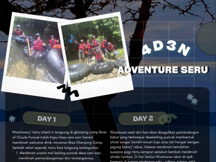 Kemudian lokasi kedua adalah Puncak Indah Kapu yang kita beri nama ' River Of Clouds Camp " dimana wisatawan bisa camping dalam suasana alam perkebunan cengkeh berada di ketinggian puncak kurang lebih memiliki ketinggian 400 dari permukaan laut, selai itu kita juga apabila beruntung akan bisa menikmati awan yang berbentuk sungai di pagi hari, dan malam hari kalau kita tepat waktunya saat bercamping kita akan menikmati indahnya kerlip bintang yang berhamburan di langit dan bulan yang bulat menyinari alam bagaikan lampu yang bersinar terang tanpa aliran listrik, dan apabila disiang hari kita juga bisa mendengar suara alam lainnya yaitu bunyi suara ngeng - ngeng penduduk lokal disana menyebutnya begitu, suara yang tak putus iramanya menemani kita berada dialam menambahkan suasana semakin terasa lebih nyaman .