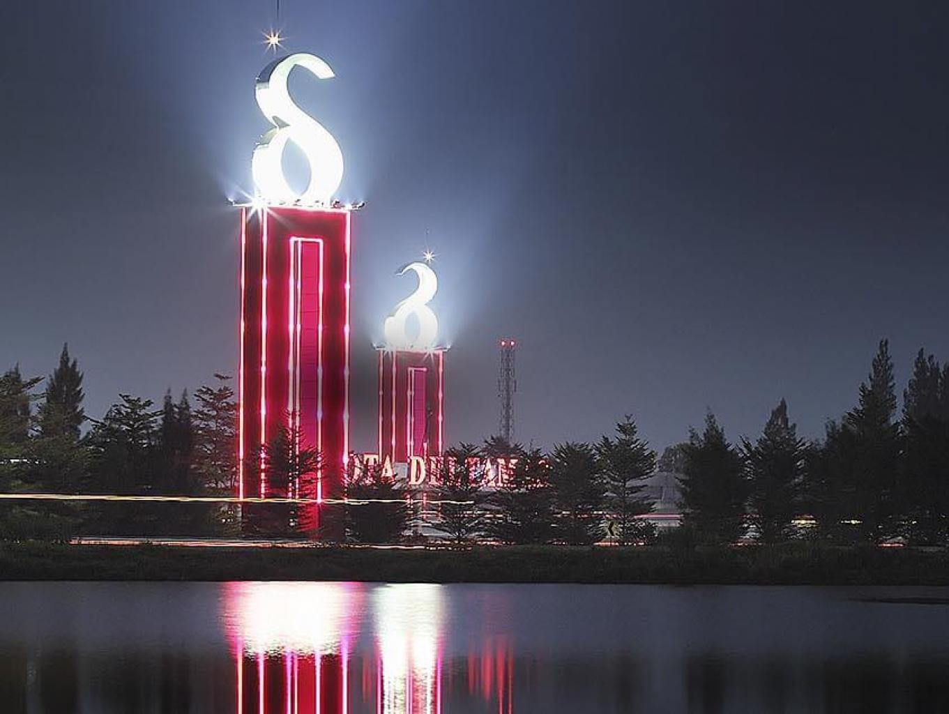 Gapura Delta Mas terletak di area wisata Situ Rawabinong. Sering dijadikan spot selfie.