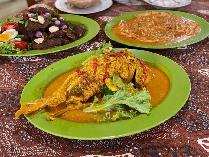 Ombus-ombus terbuat dari tepung beras dan gula merah dibungkus dengan daun pisang. dikenal dengan nama ombus-ombus karena cara menyatapnya harus di ombus yang artinya di tiup terlebih dahulu, hal tersebut karena disajikan pada saat masih panas.